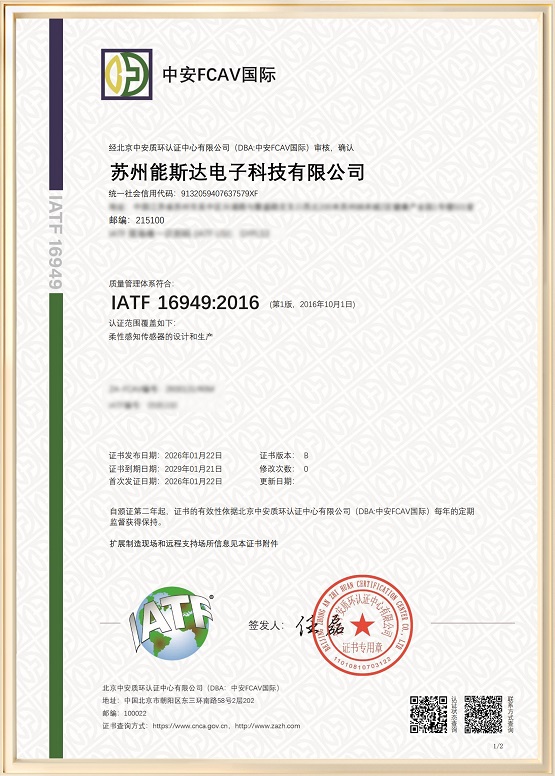 质量基石:柔性传感获得IATF 16949汽车行业认证