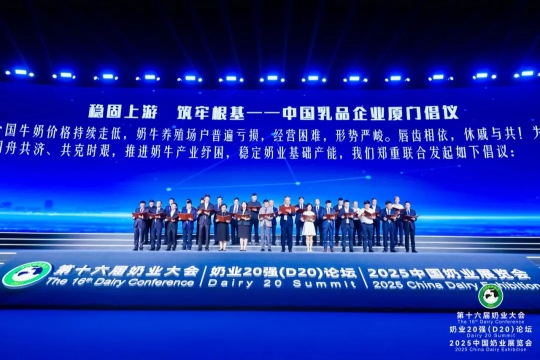 7月13-15日,在厦门举行的第十六届中国奶业大会奶业20强(D20)论坛暨2025中国奶业展览会上,行业精英围绕“品质与品牌,奋进中的坚守;合作与共赢,变局中的选择”展开深入交流。君乐宝乳业集团董事长兼总裁魏立华和仲岩副总裁分别发表主题演讲,分享企业转型升级经验。大会特别表彰了君乐宝"全产业链一体化"创新实践,授予“奶业产供销一体化发展案例”荣誉。君乐宝构建的牧草种植-奶牛养殖-乳品加工全程可控体系,不仅确保产品品质,更为中国奶业高质量发展树立了新标杆,彰显龙头企业示范引领作用。