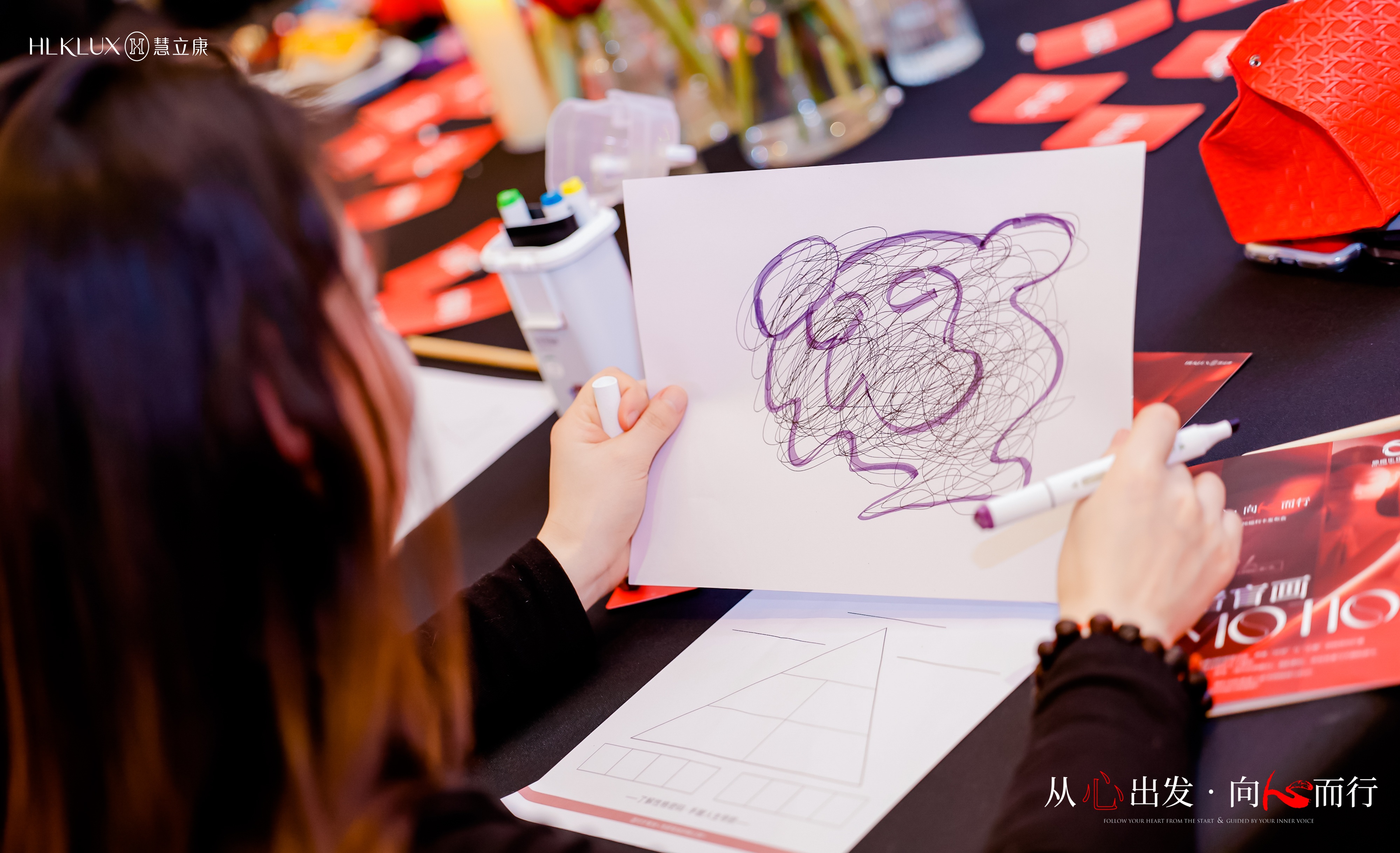 在山东济南,慧立康近期举办的一场“心沙龙”,恰好回应了上述所有痛点。这场以黑金为视觉基调的活动,没有设置任何产品宣讲环节,而是将重点聚焦于一个听起来有些“务虚”的体验——情绪盲画。