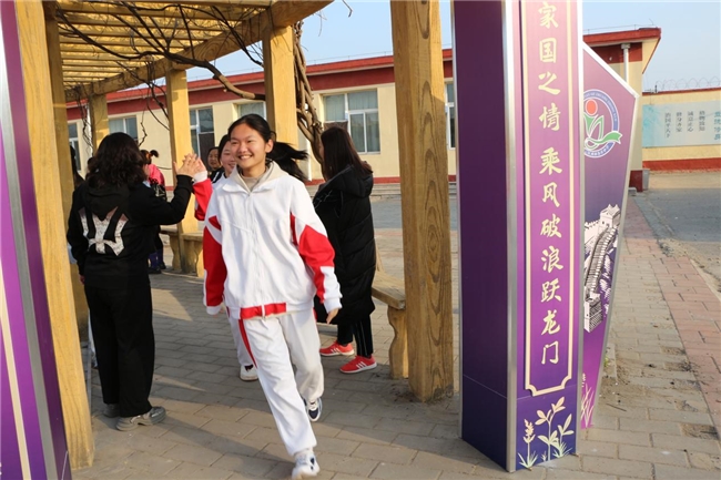 清晨的惜时园里,中考冲刺行前动员仪式在此拉开帷幕。全体初三同学列队整齐、精神抖擞,在主持人的寄语中开启研学征程。教师代表王银华、副校长刘妍序分别为学生送上殷切嘱托与安全提示。随后,全体同学昂首跨越象征奋进的"成功门",校领导与教师分列两侧击掌加油;各班在励志条幅上郑重签名,合影定格青春誓言。