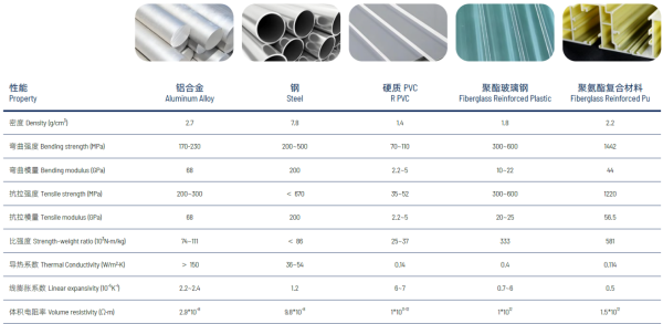 一、什么是玻纤增强聚氨酯?玻纤增强聚氨酯,是通过拉挤工艺将玻璃纤维与聚氨酯树脂复合而成的新型材料。在生产过程中,玻璃纤维经导纱板导入模具,聚氨酯树脂注胶浸润后加热固化,牵引成型。这一工艺可实现一次成型,无需二次加工,不仅效率高,也降低了废品率。简单来说,它既保留了玻璃纤维的强度和稳定性,又融合了聚氨酯优异的加工性能和环保特性,实现“1+1>2”的性能突破。